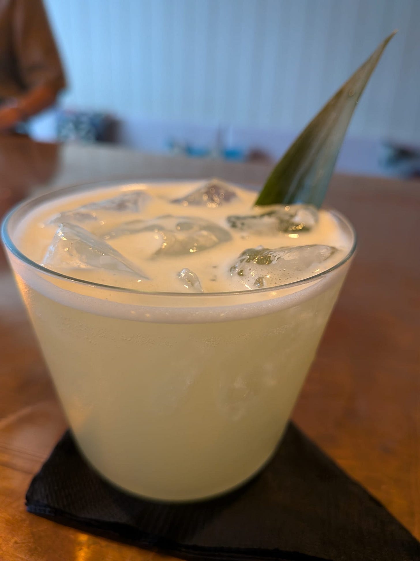 This cheeky twist on a margarita uses tepache (fermented pineapple juice, click here for a recipe) to add a slight fermented funk instead of a traditional triple sec, which then gets adjusted for sweetness with gomme (buy ready-made or make at home by dissolving 2 parts sugar to 1 part water) and fresh pineapple juice for a nice, rounded, fresh taste.